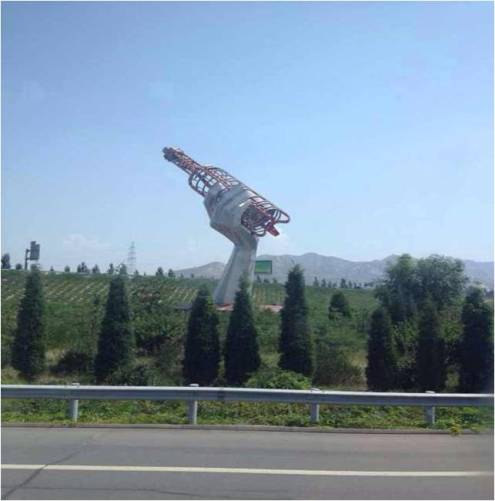 途徑董存瑞的故鄉(xiāng)懷來,那只手拖著個(gè)***就是城市的標(biāo)志