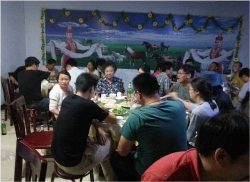 不知不覺已近黃昏,置身草原,感受微風(fēng)習(xí)習(xí),綠草飄搖,真是面對(duì)草原,浮想聯(lián)翩,心潮澎湃,心情那個(gè)爽啊。回到農(nóng)莊,我們即將聚餐,等待那有蒙古風(fēng)情的烤全羊。